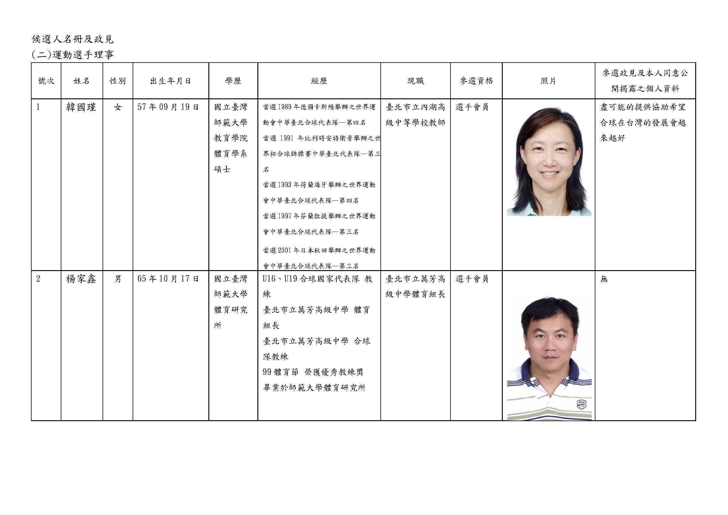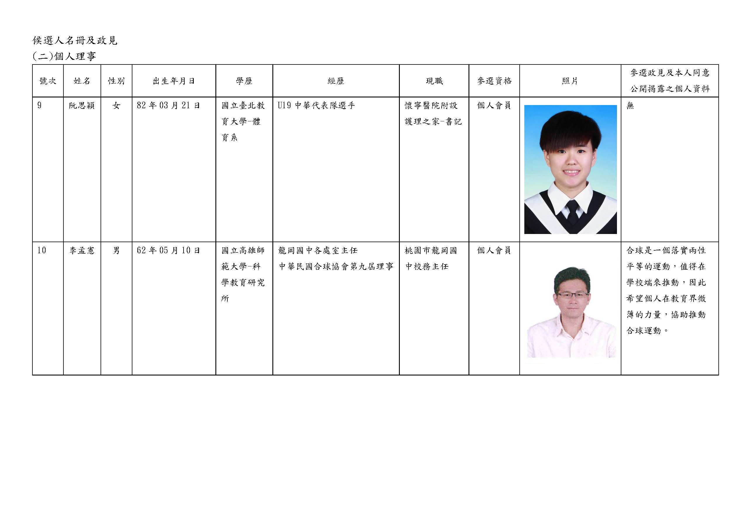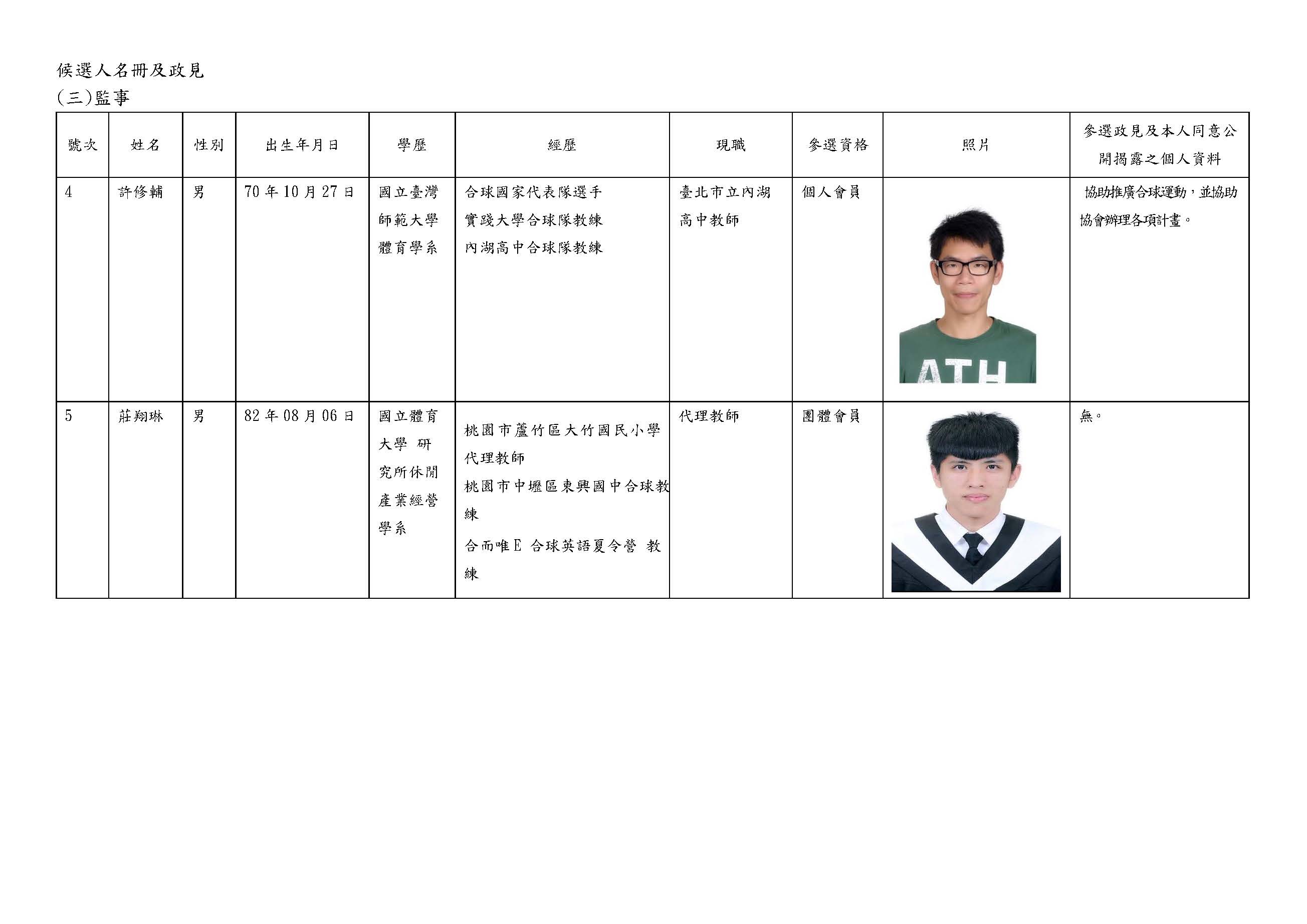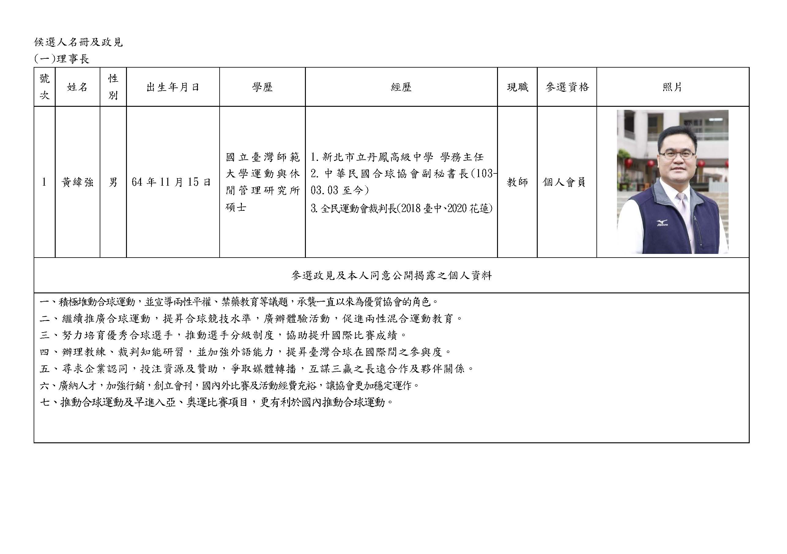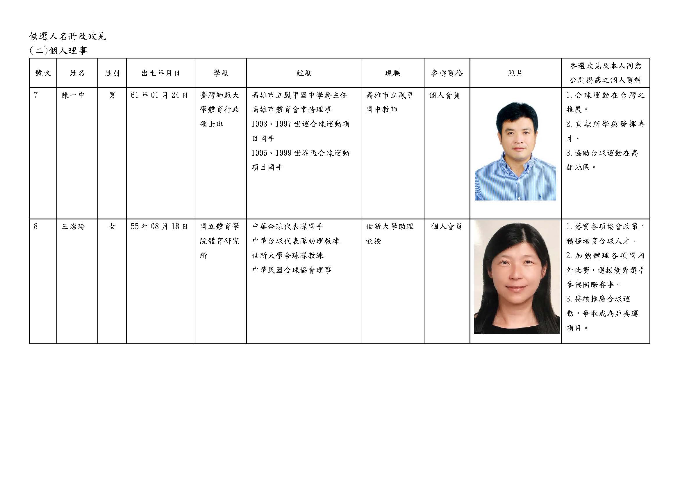 第十屆第一次會員大會暨理事長、理事、監事選舉-選舉名冊及政見