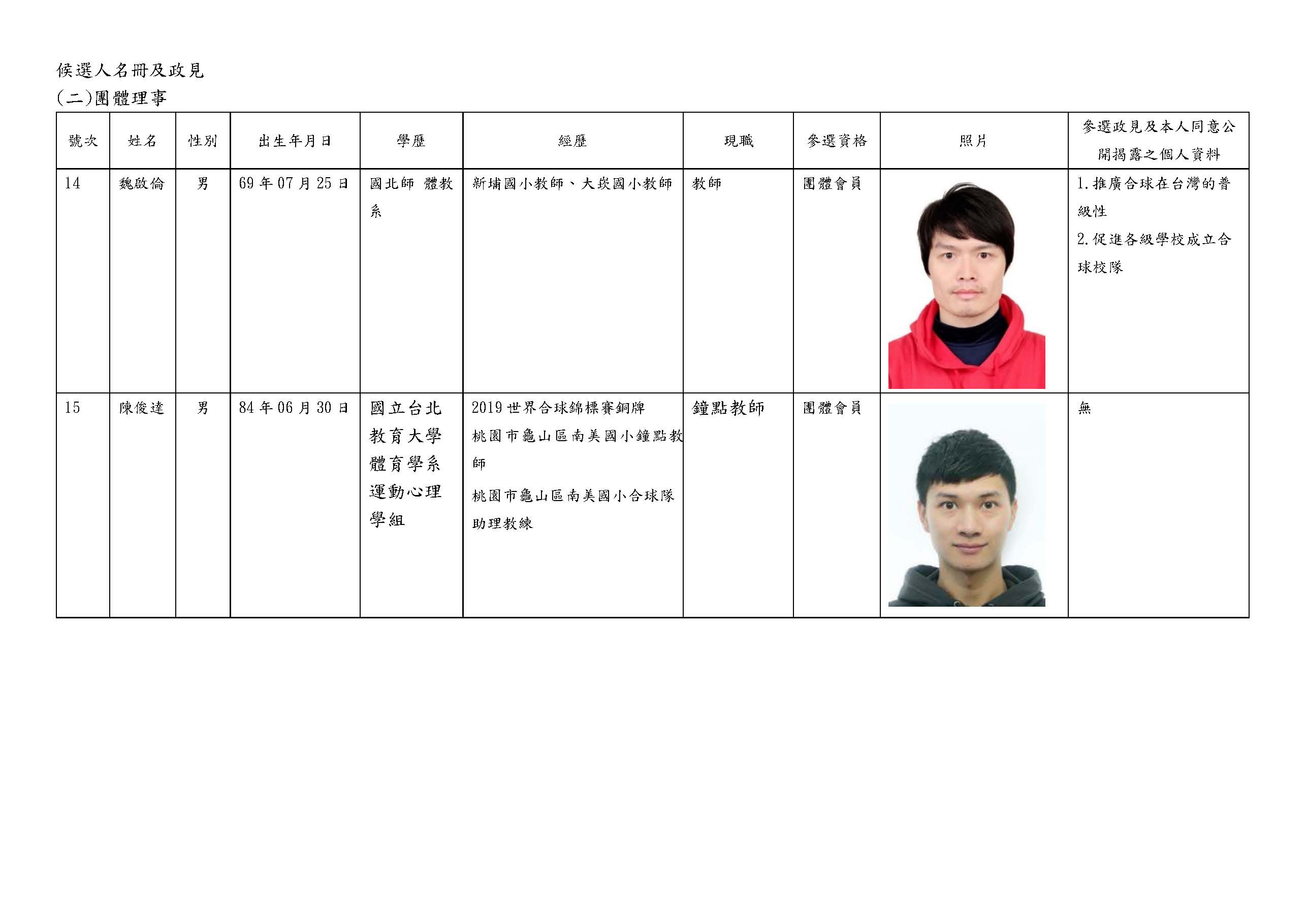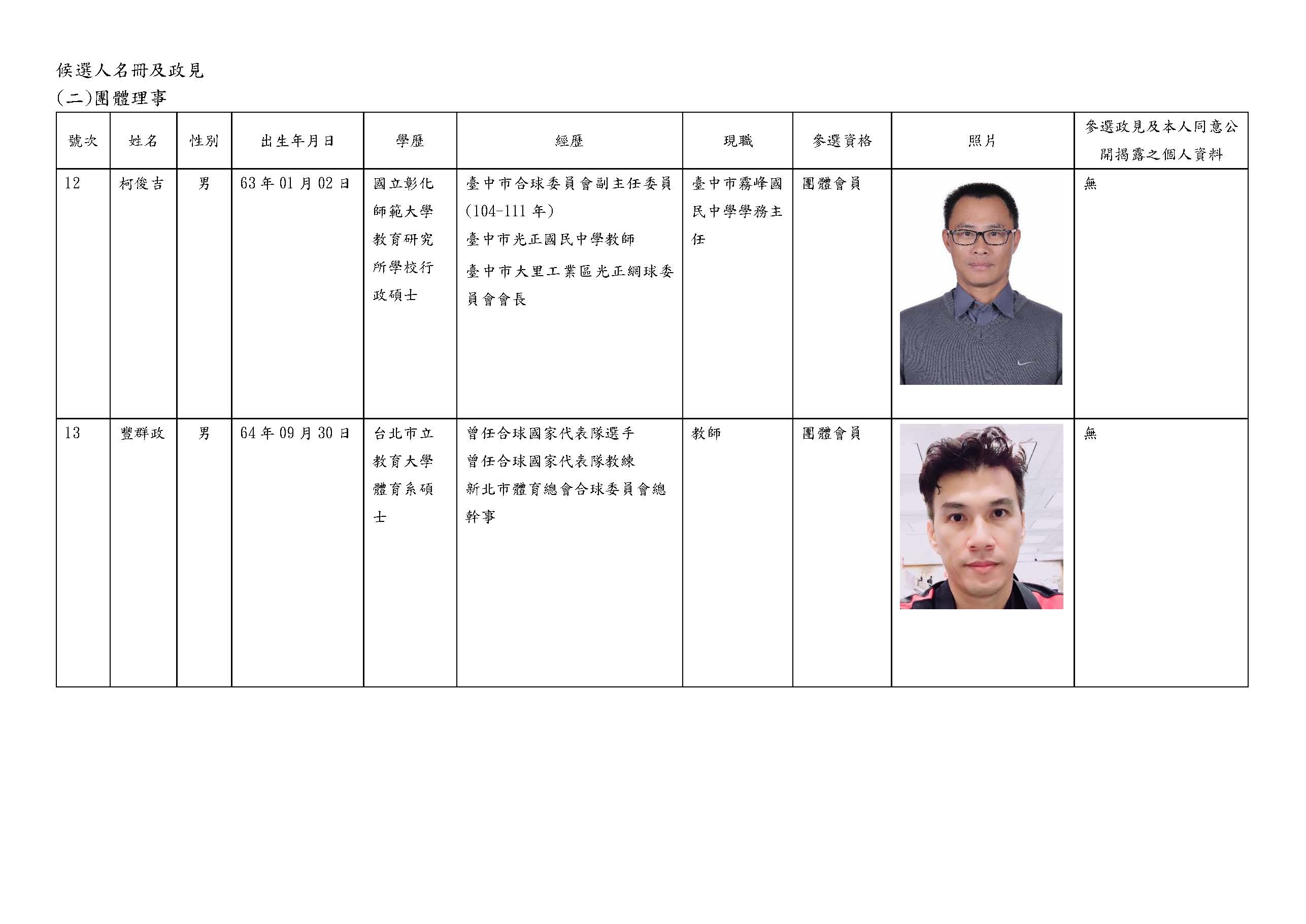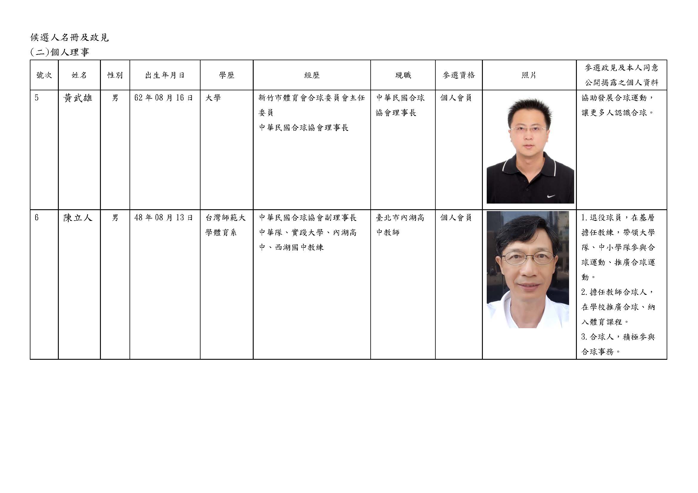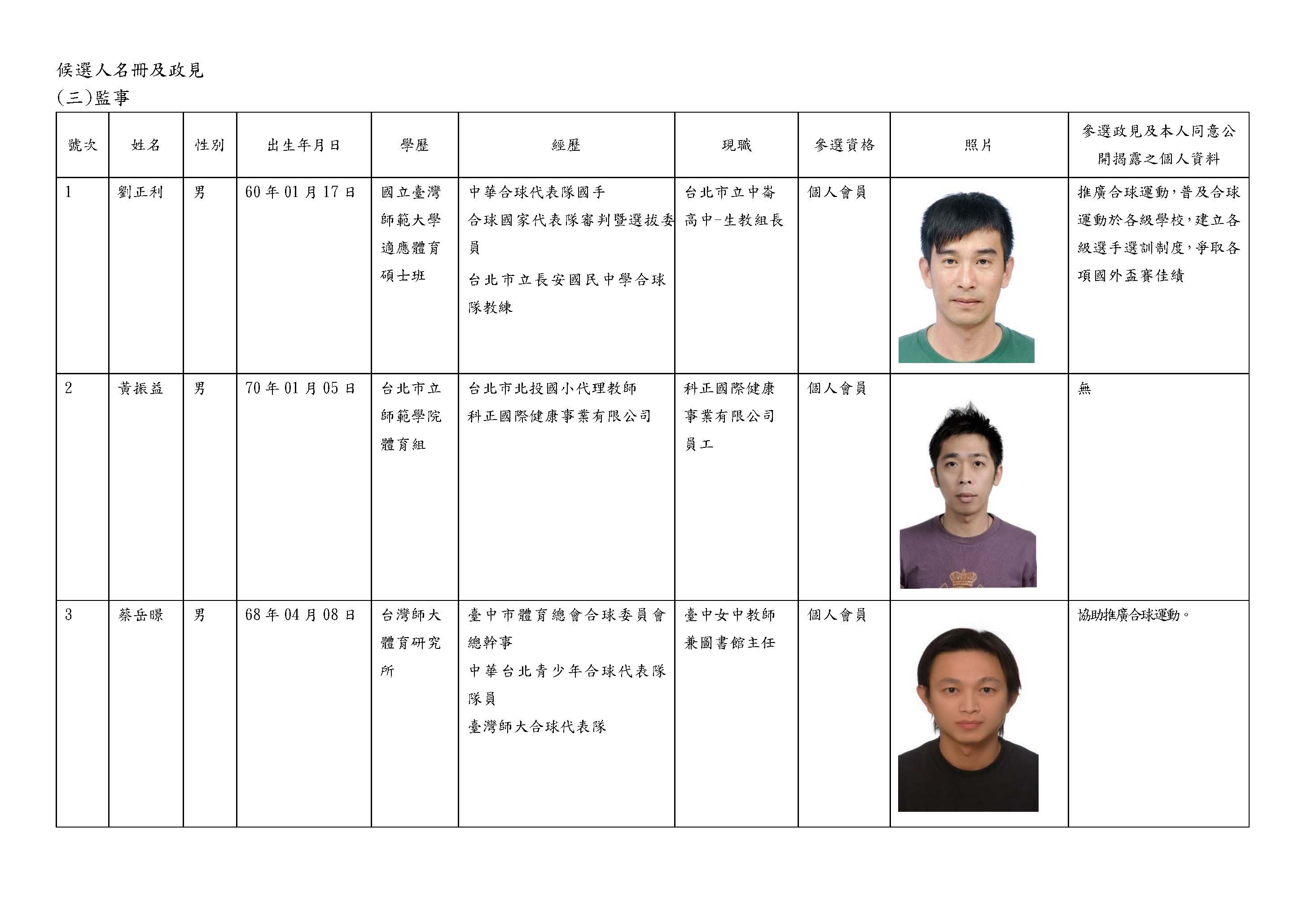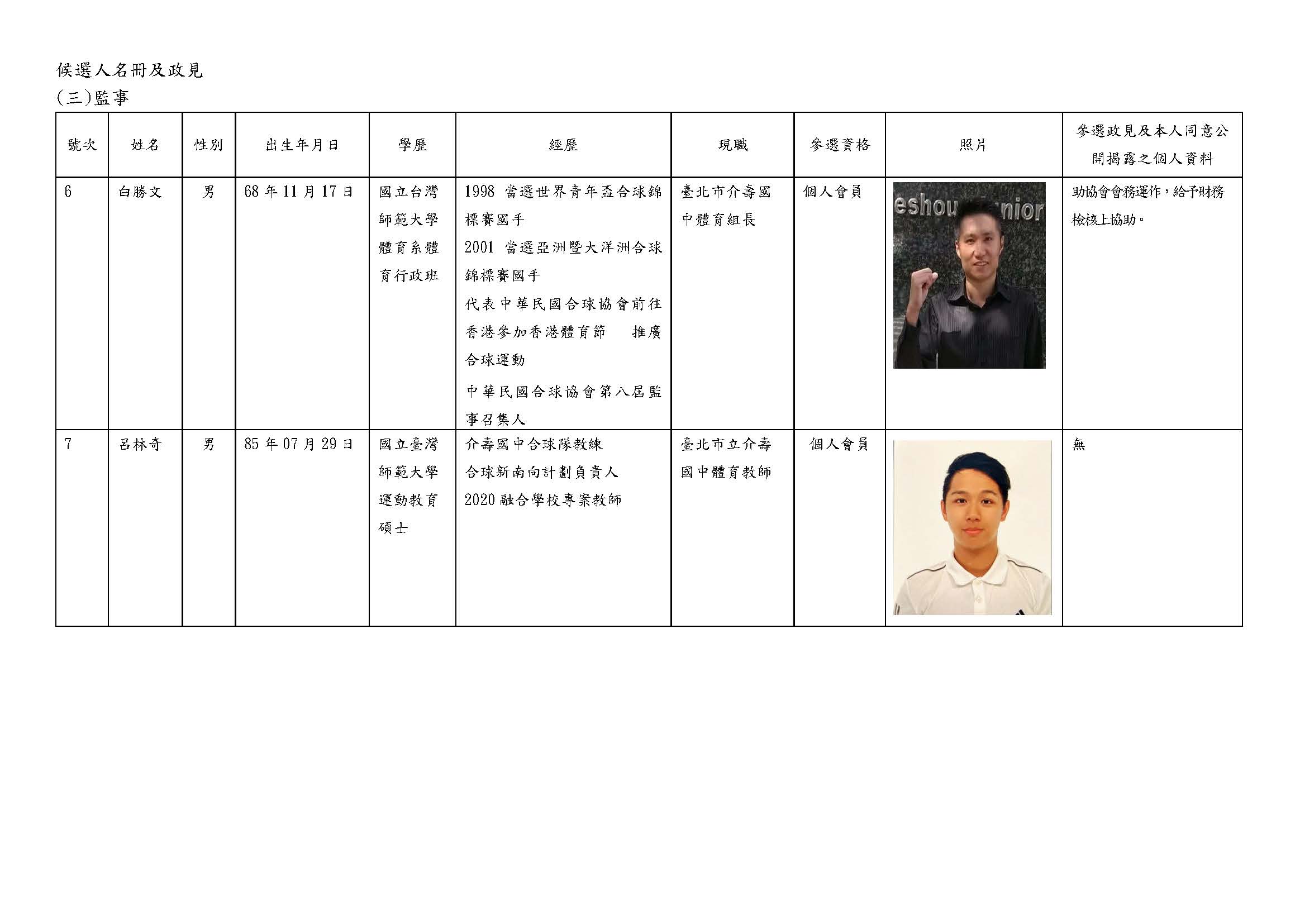 第十屆第一次會員大會暨理事長、理事、監事選舉-選舉名冊及政見