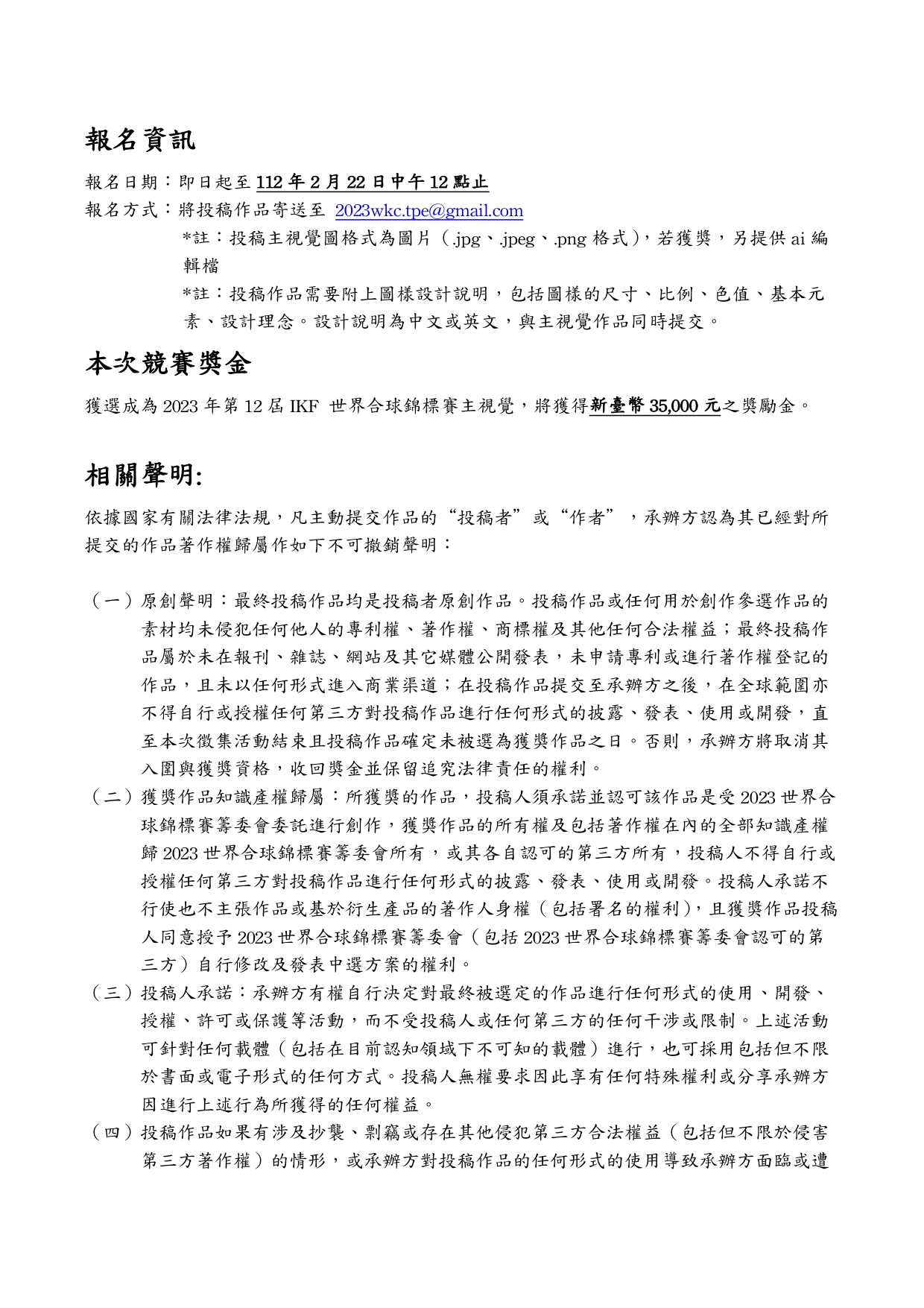報名方式:將投稿作品寄送至 2023wkc.tpe@gmail.com
