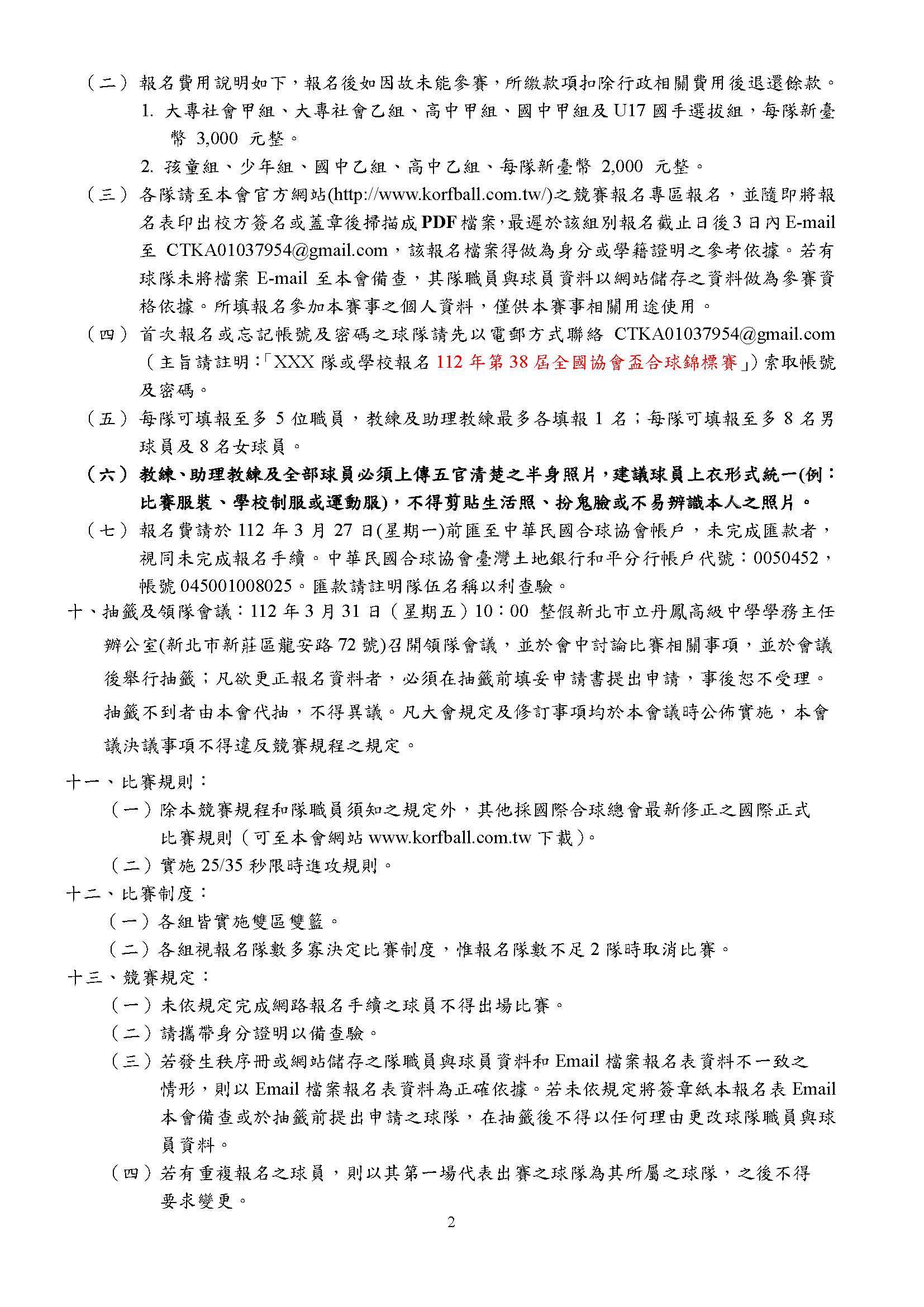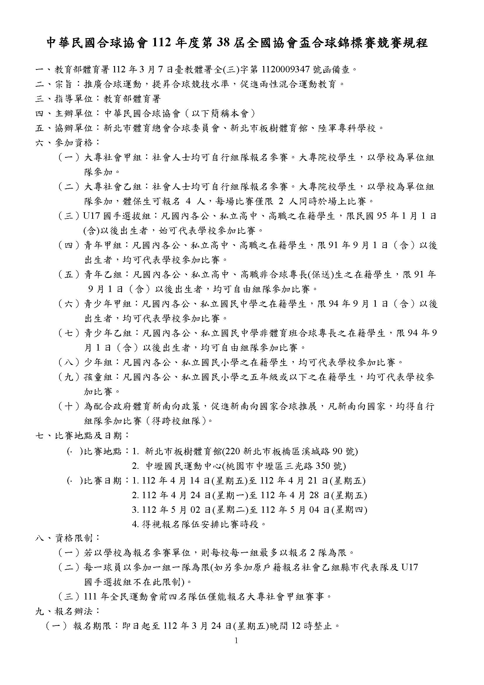 112年度第38屆全國協會盃合球錦標賽(報名截止日:3/24)