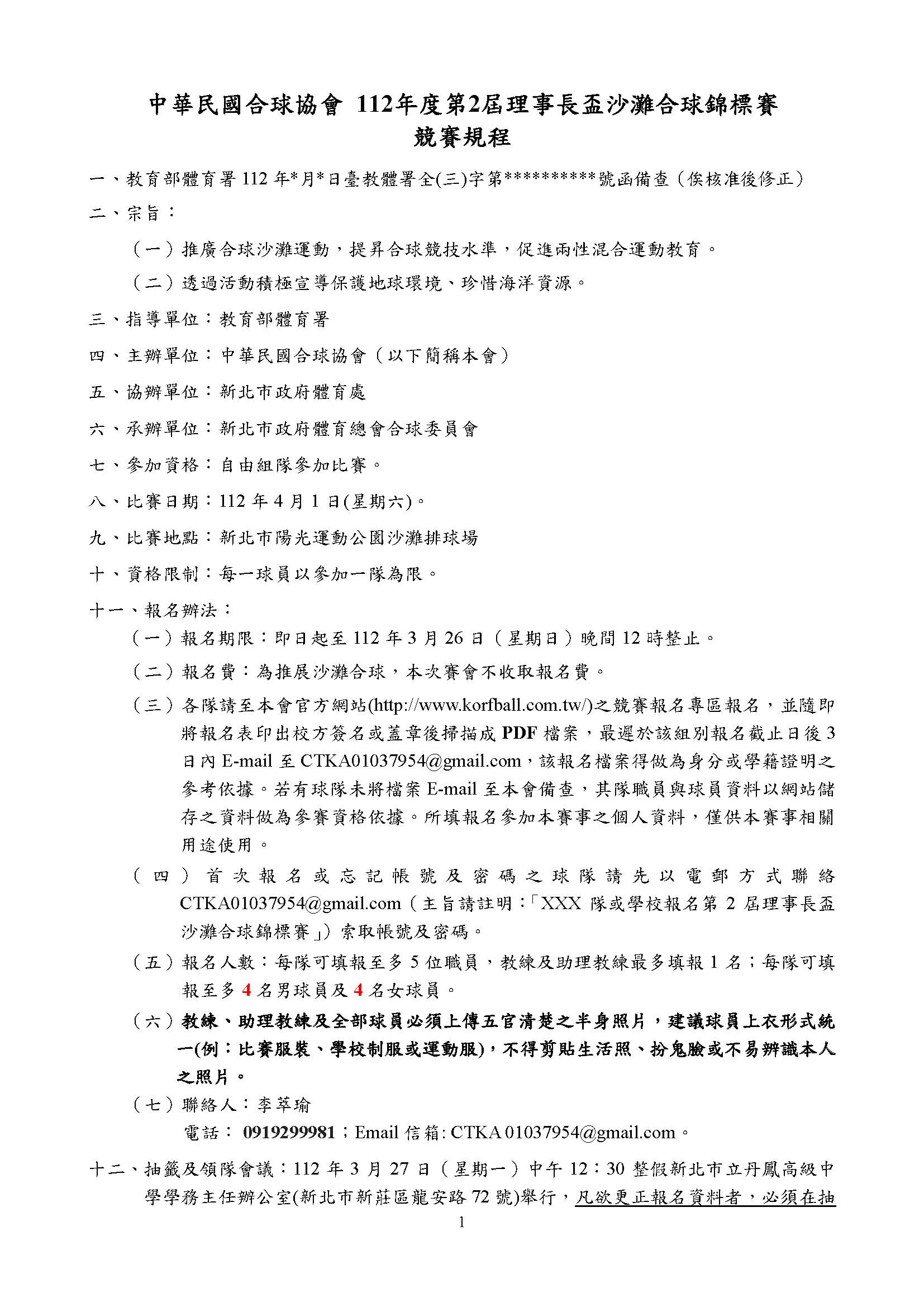 112年度第2屆理事長盃沙灘合球錦標賽(報名截止:3/26)