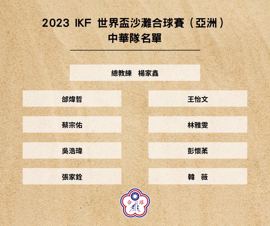 2023 IKF 世界盃沙灘合球賽(亞洲)中華隊名單公告